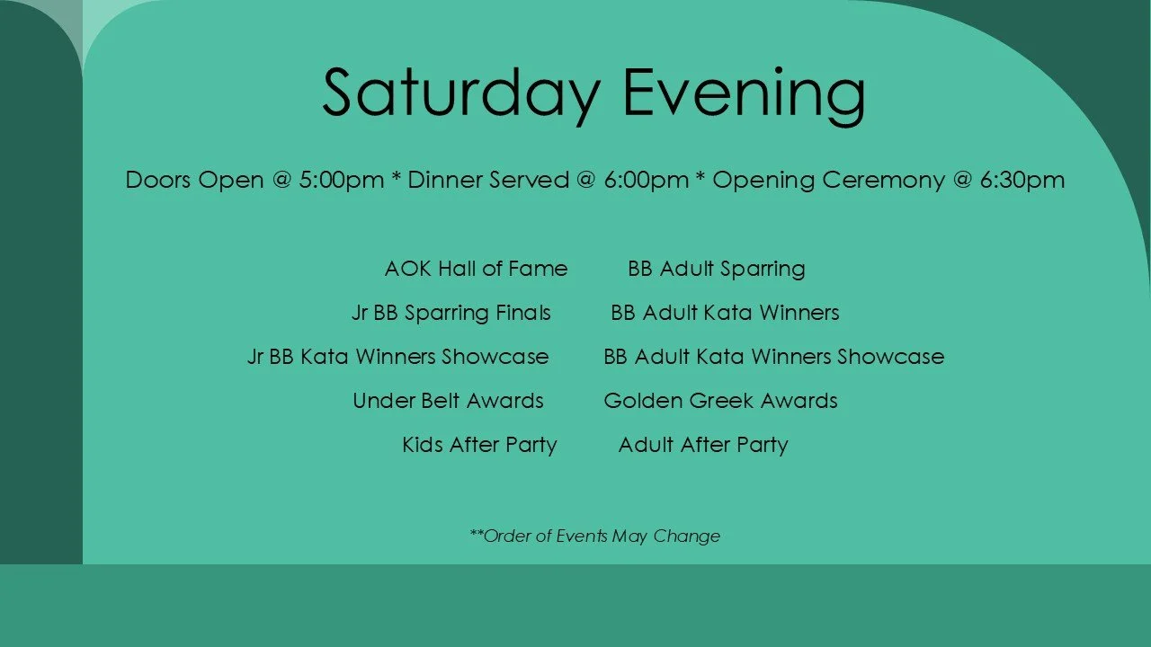 Join us for a fun filled evening on Saturday Night for the Night Finals and Award Presentations.